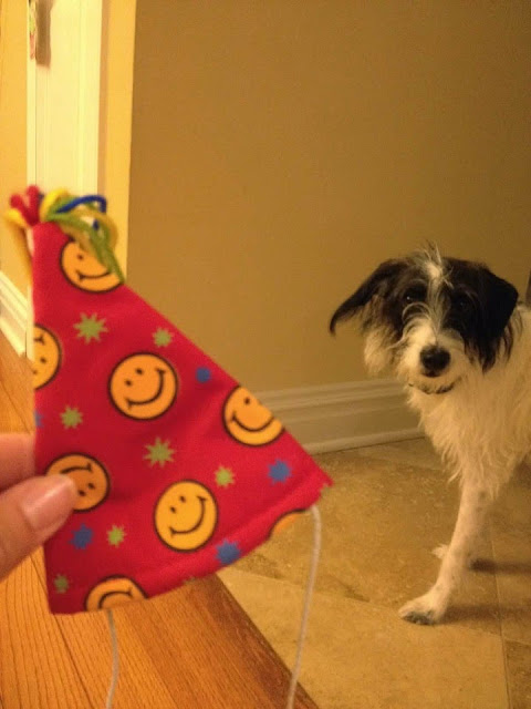 Did I mention that there were no hats at this birthday celebration? Spotty took one look at that hat and said, "uh....nope."